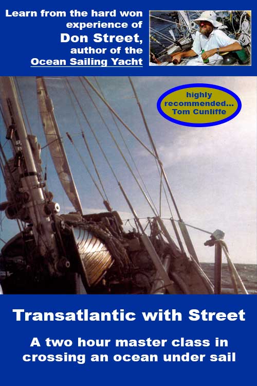 “Sailing legend Don Street’s account of a transatlantic voyage aboard his 46-foot, 22-ton, engineless yawl, Iolaire, is in turns an adventure tale, a cruising guide, and an extended lesson in seamanship, all told in Don’s inimitable style. A surprise back-story is the transformation of London businessman Gavin Shaw from neophyte to passionate ocean sailor. It’s like going to sea with Don — the only things missing are the cold Heinekins and the salt spray in your face.”